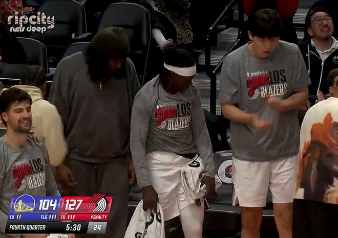 杨瀚森已经穿上了训练服开始看比赛,末节勇士已经放弃比赛,斯普利特率先换上的是先发中锋克林根,这时候等同于垃圾时间了。